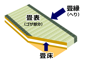 ②畳の裏の部分を使いたい方は【裏返し価格表】をご覧下さい。